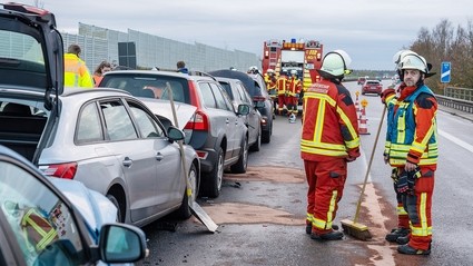 Der Unfall ereignete sich am Dienstag gegen 07:20 Uhr zwischen den Anschlussstellen "Breitengüßbach-Mitte" und "Breitengüßbach-Süd". Ein 52-jähriger Autofahrer musste seine Geschwindigkeit aufgrund der Verkehrslage stark reduzieren. Die drei nachfolgenden Pkw-Fahrer reagierten rechtzeitig und konnten ihre Fahrzeuge noch abbremsen. Ein 18-jähriger Ford-Fahrer konnte jedoch nicht mehr rechtzeitig anhalten und prallte mit hoher Geschwindigkeit in die Fahrzeugreihe. Dabei schob er vier vor ihm fahrende Autos ineinander.