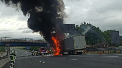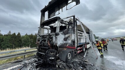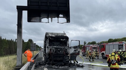 Auf Höhe der Anschlussstelle Gefrees (Landkreis Bayreuth) bemerkte der 37-jährige, weißrussische Fahrer, dass die Motorkontrollleuchte aufleuchtete und Qualm aus dem Motorraum seines Lkw kam, so die Polizei. Er hielt den Lkw rechts auf dem Ausfädelungsstreifen an, bevor die Zugmaschine begann zu brennen und in kürzester Zeit in Vollbrand stand.