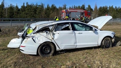 Die 46-Jährige aus Sachsen-Anhalt war am Sonntag (3. März) gegen 13:40 Uhr auf der A9 in Richtung Süden unterwegs. An der Anschlussstelle Naila/Selbitz verließ sie die Autobahn. Dabei fuhr sie zu schnell in die Rechtskurve und kam geradeaus fahrend in eine Grünfläche, die sie überquerte. Im Graben einer Regenabflussrinne wurde der Ford ausgehoben und überschlug sich im Anschluss mehrfach. Hinter der Schutzplanke der gegenüberliegenden Fahrbahn kam das Auto schließlich nach rund 40 Metern auf den Rädern zum Stehen.