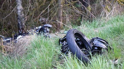 Der Motorradfahrer übersah beim Überholen eines Lkw einen entgegenkommenden Pkw und prallte ungebremst in das Auto. Der Fahrer des Zweirades wurde dadurch vom Motorrad katapultiert und flog mehrere Meter durch die Luft. Er landete abseits der Bundesstraße in einer abschüssigen Baumgruppe. Das Motorrad wurde in zwei Teile zerrissen. Diese kamen ebenfalls neben der Fahrbahn zum Liegen.