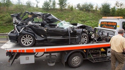 BMW-Fahrer touchiert Auflieger und crasht in Leitplanke