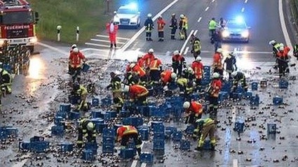 Am Dienstagabend (24. Abend) blockierten 230 Bierkästen die Autobahn A9 in Fahrtrichtung Berlin im Bereich von Bad Berneck (Landkreis Bayreuth). Die Kästen lagen über alle drei Fahrstreifen verteilt. Grund war laut Polizei offensichtlich die mangelnde Ladungssicherung des Lkw.