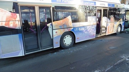 Eine 82-Jährige fuhr mit ihrem Auto rückwärts aus einer Einfahrt und übersah dabei einen von rechts kommenden Stadtbus. Die Fahrerin des Buses, der mit mehreren Fahrgästen besetzt war, versuchte noch durch Bremsen und Ausweichen einen Zusammenstoß mit dem Mercedes der Coburgerin zu verhindern. Die Busfahrerin konnte zwar einen Frontalaufprall verhindern, dennoch streifte der Bus mit der rechten Seite den Mercedes. Der Pkw wurde durch den Zusammenstoß mit dem Bus gedreht und stand zwischenzeitlich in entgegengesetzter Fahrtrichtung des Buses in der Einbahnstraße.