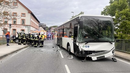 Der Linienbus war mit insgesamt zwölf Fahrgästen, ausschließlich Kinder und junge Erwachsene im Alter von zwölf bis 23 Jahren, besetzt. Vier Kinder wurden leicht verletzt. Sie konnten bereits an der Unfallstelle in die Obhut ihrer Eltern übergeben werden. Die Pkw-Fahrerin verletzte sich ebenfalls leicht und kam zur weiteren medizinischen Versorgung in ein Krankenhaus.