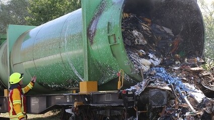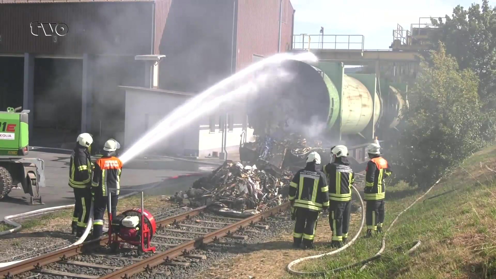 Seit etwa 05:00 Uhr am heutigen Mittwochmorgen (04. Juli) brennt auf der Müllverladestation in der Von-Linde-Straße in Kulmbach ein Güterbahnwaggon. Dieser ist beladen mit einem Müllpresscontainer und beschäftigt seit Stunden die Einsatzkräfte. Aus dem Container dringt dichter Rauch, weshalb Anwohner gebeten werden ihre Fenster und Türen geschlossen zu halten. Zahlreiche Feuerwehrkräfte sind vor Ort. Die Löscharbeiten gestalten sich jedoch schwierig. Die Brandursache ist noch völlig unklar. Der Einsatz wird noch mehrere Stunden am heutigen Tag andauern.
