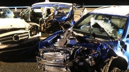 Gegen 16:10 Uhr kam es auf der schneebedeckten Fahrbahn auf Höhe der Talbrücke Trockau in Richtung Berlin zu einem Auffahrunfall zwischen einem Mercedes-Fahrer und einem Sattelzug. Nachdem beide Fahrzeuge standen, konnten zwei weitere Autofahrer nicht mehr rechtzeitig bremsen und stießen mit den Unfallfahrzeugen zusammen.