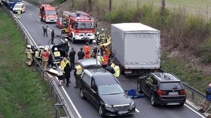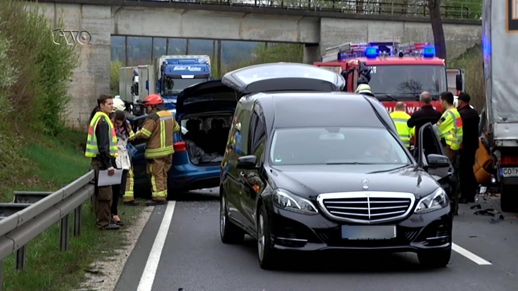 Laut Zeugenaussagen war eine 45-jährige Frau am Mittwoch (12. April) auf der B303 bei Ebersdorf bei Coburg unterwegs. Aus bislang ungeklärten Gründen geriet die Frau auf die Gegenfahrbahn und krachte frontal mit einem Lkw zusammen. Die Frau verstarb noch an der Unfallstelle. Sie wurde in dem Autowrack eingeklemmt und musste mit schwerem Gerät aus dem Fahrzeug geborgen werden. Ein hinter dem Lkw fahrender BMW fuhr in Folge des Zusammenstoßes auf den Lkw auf. Der Fahrer des BMW und des Lkw wurden leicht verletzt. Die B303 wird für mindestens noch eine Stunde gesperrt sein