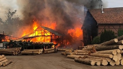 Ein enormer Sachschaden entstand am Montag (16. September) bei dem Brand eines Sägewerks im Kronacher Ortsteil Höfles. Wie die Polizei am Abend mitteilte, gingen kurz vor 17:30 Uhr mehrere Mitteilungen über ein Feuer beim örtlichen Sägewerk per Notruf ein. Sämtliche Feuerwehren aus der Umgebung begaben sich daraufhin zu dem Brandort. Beim Eintreffen der Rettungskräfte stand die Werkshalle sowie ein Holzlager bereits in Brand. Den Feuerwehrkräften gelang es, ein Ausbreiten des Brandes zu verhindern und die Flammen unter Kontrolle zu bringen.