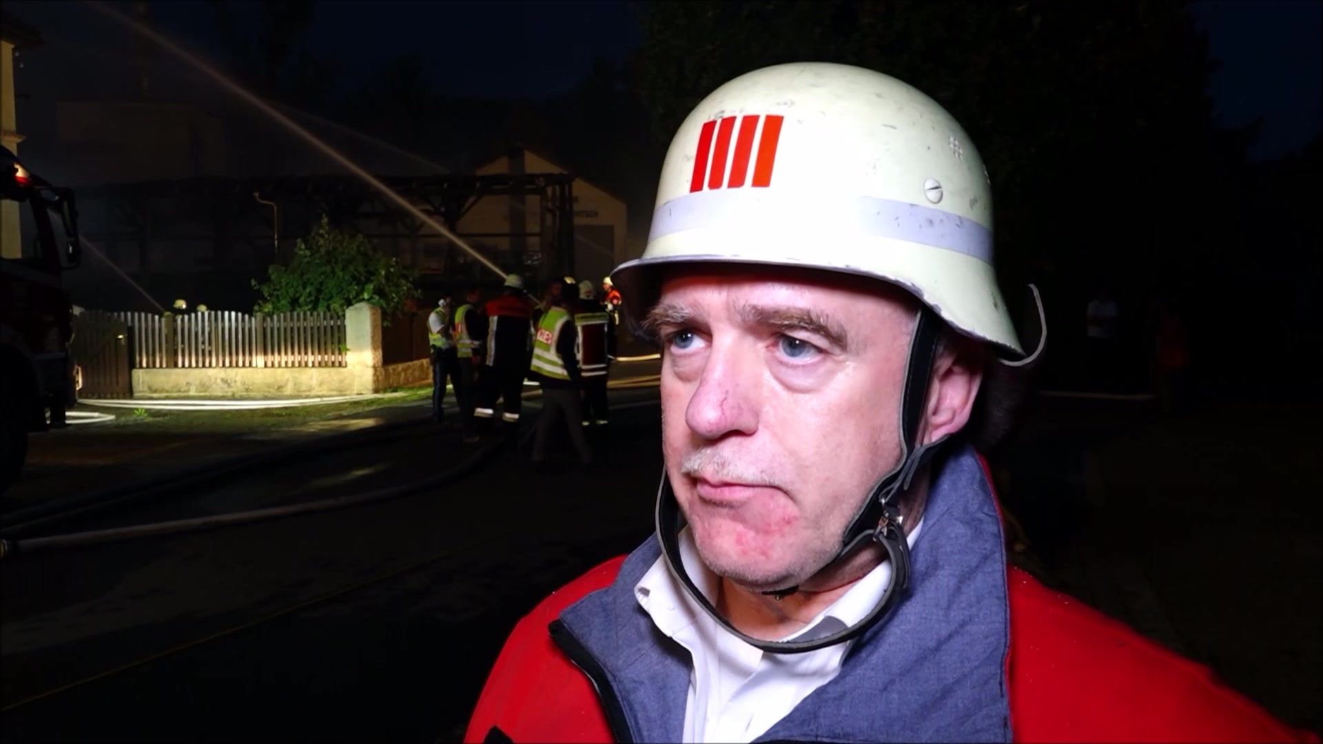 Das Gebäude, welches zum Großteil aus Holz besteht, wurde von den Flammen komplett zerstört. Demnach soll auch ein Teil des Bauwerks bereits eingestürzt sein. Die Einsatzkräfte kämpfen am Montagabend immer noch vor Ort gegen die massive Brandentwicklung. So ist die Feuerwehr mit zwei Drehleitern und einem Großaufgebot im Einsatz. Nach ersten Informationen wurden keine Personen verletzt.