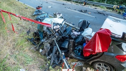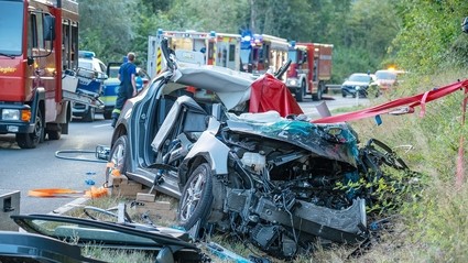 Durch den Unfall wurde die 24-Jährige in dem Unfallwrack eingeklemmt. Die alarmierten Feuerwehren aus den umliegenden Ortschaften befreiten die Frau mit schwerem Gerät aus dem Pkw. Laut Polizei kam die Frau nach der Erstversorgung mit lebensgefährlichen Verletzungen per Rettungshubschrauber in ein Krankenhaus und wurde dort notoperiert. Der Lkw-Fahrer blieb unverletzt.
