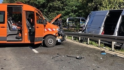 Zu einem schweren Verkehrsunfall mit zwei Kleintransportern kam es am Morgen auf der Staatsstraße 2191 bei Hollfeld (BT). Laut ersten News5-Informationen sicherte ein Fahrzeug des Bauamtes die Fahrbahn ab, da an der Strecke in der Früh Baumfällarbeiten durchgeführt wurden
