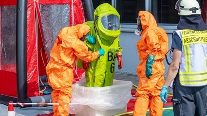 Zu einem Gefahrgut-Einsatz kam es für Einsatz- und Rettungskräfte am Mittwochnachmittag (14. August) in der Rodezstraße in Bamberg. In einem dortigen Gewerbebetrieb liefen dutzende Liter Salzsäure aus einem Behälter aus. Die Flüssigkeit verbreitete sich auf rund zehn Quadratmeter des Geländes, um den betreffenden Behälter herum.
