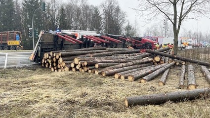 Am Donnerstagnachmittag (22. Februar) kam es auf der B173 bei Köditz (Landkreis Hof) zu einem schwerwiegenden Verkehrsunfall. An der Kreuzung nach Berg / Bruck kippte beim Abbiegen ein Holzlaster auf die Seite. Der Fahrer wurde bei dem Unfall verletzt. Er musste von der Feuerwehr aus dem Führerhaus befreit werden. Die Ladung, bestehend aus zahlreichen Holzstämmen, rollte die angrenzende Böschung hinunter. Die Unfallursache ist bisher noch unklar. Die Bundesstraße ist momentan zwischen Naila / Selbitz und Hof-Nord gesperrt. Es gibt eine entsprechende Umleitung. Dennoch kommt es