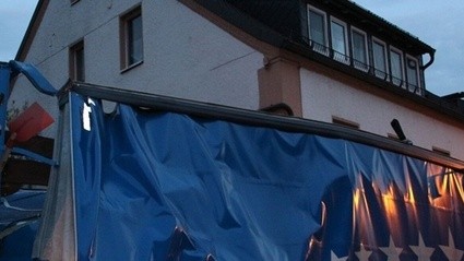 Offenbar ordentlich verschätzt hat sich ein Lkw Fahrer in Gefrees. Er crashte mit seinem Gefährt ein Dach und riss dabei einen Teil der Dachkonstruktion ab. Auch die komplette Plane und die Ladung wurden in Mitleidenschaft gezogen.