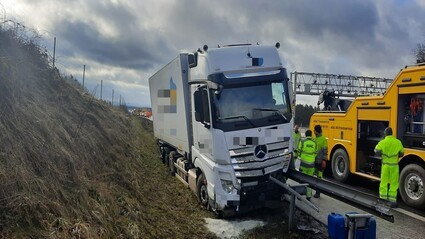 Ein schwerer Lkw-Unfall ereignete sich am Freitagmorgen (11. Februar) auf der A9 bei Pegnitz (Landkreis Bayreuth) in Richtung Berlin. Bei der Fahrt erlitt der Lkw-Fahrer (51) einen heftigen Hustenanfall, so die Verkehrspolizei Bayreuth am Samstag (12. Februar). Dabei konnte sich der 51 Jahre alte Mann für mehrere Sekunden nicht auf den Verkehr konzentrieren, weshalb dieser nach rechts von der A9 abkam.