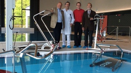 Das Schwimmbad im neuen Therapiezentrum in der Klinik Hohe Warte in Bayreuth kann dank einer Spende des Freundeskreises der Klinikum Bayreuth GmbH e. V. für die Patienten und Therapeuten noch attraktiver genutzt werden. Durch eine Unterstützung in Höhe von über 10.000 Euro konnten zwei Unterwasserfahrräder, zwei Unterwasserlaufbänder und ein Unterwassertrampolin zusätzlich angeschafft werden.