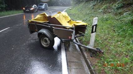 Als sich die Anhängerkupplung an einem Mercedes Viano plötzlich löste, wurde der daran befestigte Anhänger plötzlich zum Verkehrshindernis und verursachte einen Unfall am Donnerstag (07. Juni) bei Egloffstein (Landkreis Forchheim).