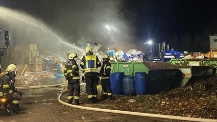 In einem Kulmbacher Entsorgungsfachbetrieb in der von-Linde-Straße ist in der Nacht zum Sonntag (15. November) ein Feuer ausgebrochen. Durch den Brand kam es zu einem groß angelegten Einsatz von Feuerwehr, Rettungsdienst, Technischem Hilfswerk und Polizei. Die Brandursache ist unterdessen noch unklar.