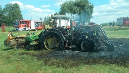 Bei Eintreffen der Einsatzkräfte stand der Traktor bereits in Vollbrand. Der Feuerwehr gelang es die Flammen unter Kontrolle zu bringen und zu löschen. Der Landwirt wurde nicht verletzt. Die Brandursache ist bislang noch unklar. Möglicherweise handelt es sich um einen technischen Defekt. Der Schaden beträgt 10.000 Euro.