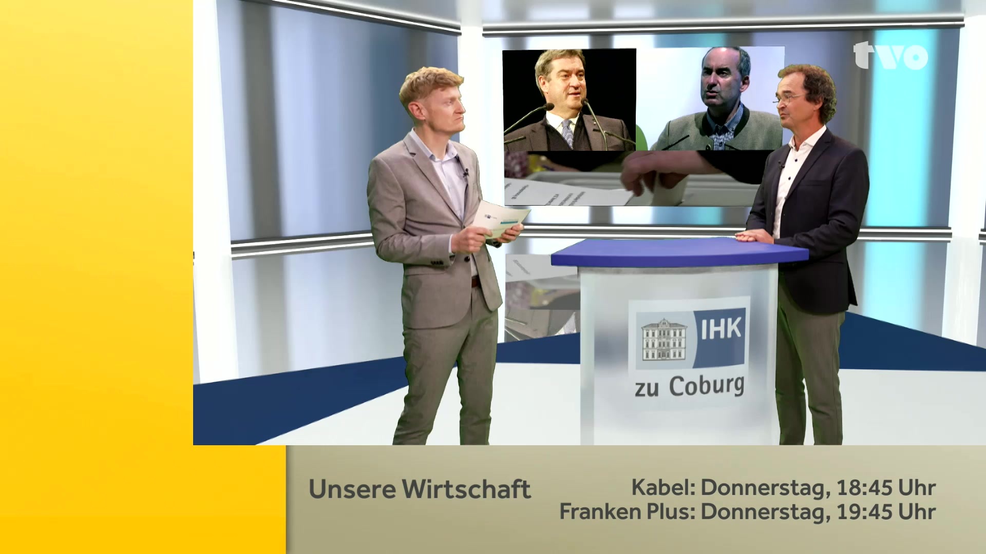 Nach der Wahl ist vor den Wünschen und Hoffnungen der Wirtschaft. Auf was es ihm in Bayern jetzt ankommt, darüber spricht TVO-Moderator Andreas Heuberger mit Andreas Engel, Präsident der IHK zu Coburg. Die neue Ausgabe von „Unsere Wirtschaft“ sehen Sie am Donnerstag (26. Oktober), ab 18:45 Uhr im Kabel und 19:45 Uhr via SAT auf FrankenPlus sowie online im Livestream.