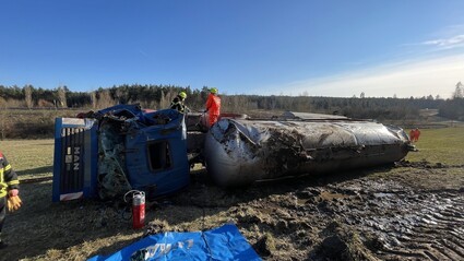 Ein schwerer Verkehrsunfall, auf der Ortsverbindungsstraße zwischen Neuses am Brand (Landkreis Coburg) und Mödlitz (Landkreis Kronach), beschäftigte am Samstagnachmittag (12. März) zahlreiche Einsatzkräfte. Ein Güllelaster kam von der Straße ab und überschlug sich. Der Fahrer wurde im stark beschädigten Fahrerhaus eingeklemmt.