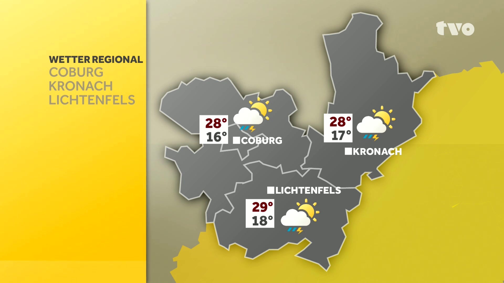 Die Tiefdruckgebiete "Kay" und "Justus" schaufeln derzeit schwülwarme Luftmassen nach Deutschland. Auf deren Vorderseite reißt der Zustrom von feuchter und sehr warmer Luft aus dem Mittelmeerraum nicht ab. Die Bedingungen für unwetterartige Gewitter sind durch eine instabile und feuchte Luftmasse somit gegeben. Im Tagesverlauf nimmt die Gewitterneigung zwischen Hof und Forchheim weiter zu. Dabei drohen dann lokale Unwetter mit heftigem Starkregen, Hagel und schweren Sturmböen.