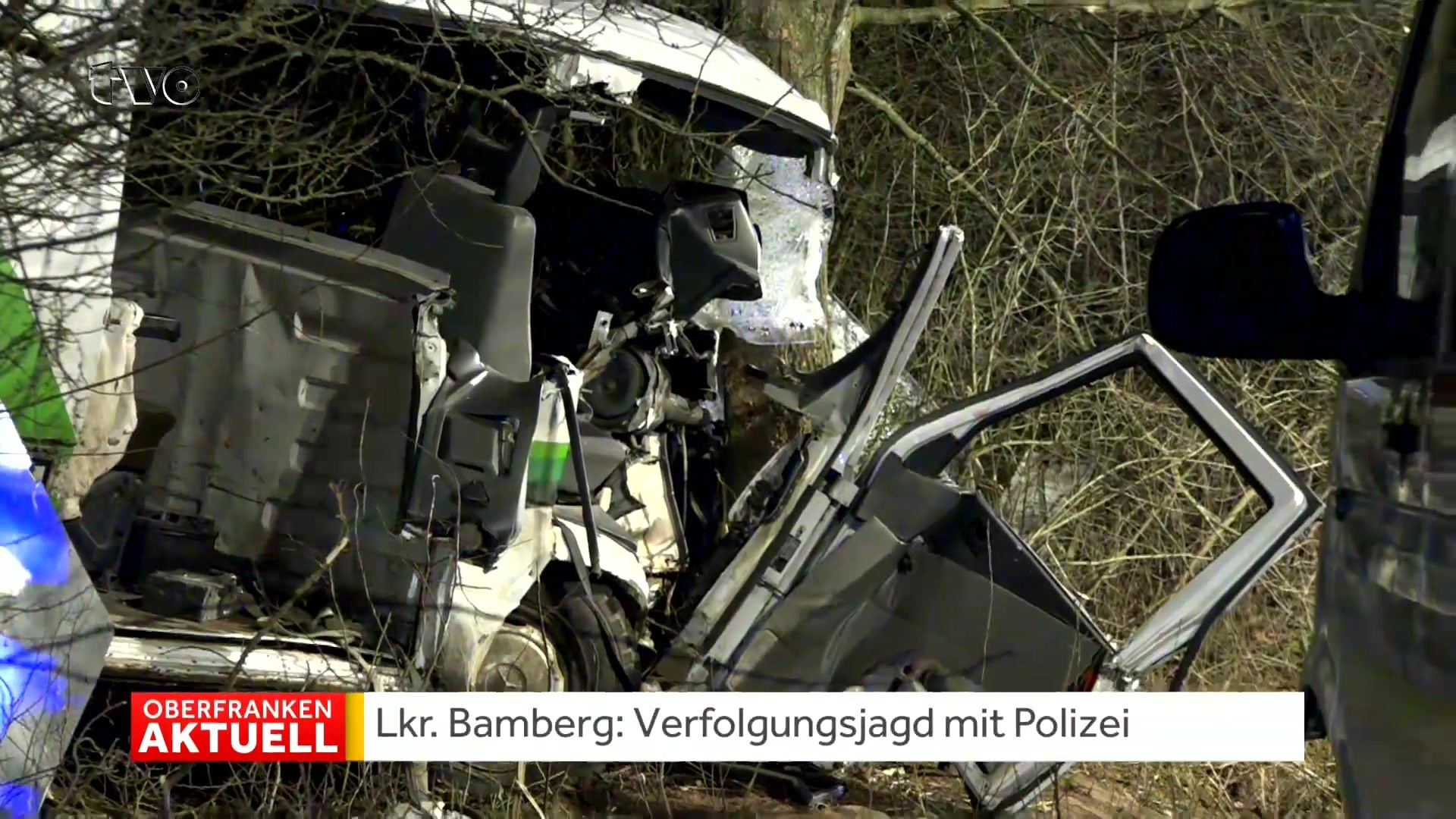Am Freitagabend (02. März) prallte ein 40-Jähriger mit einem Mercedes-Kastenwagen in der Nähe der Oberhaider Ortsteils Staffelbach (Landkreis Bamberg) gegen einen Baum. Er und sein Mitfahrer (36) erlitten schwere Verletzungen. Der Fahrer flüchtete zuvor von der Bamberger Innenstadt aus vor der Polizei. Mehrere Streifenfahrzeuge wurden hierbei zum Teil schwer beschädigt.