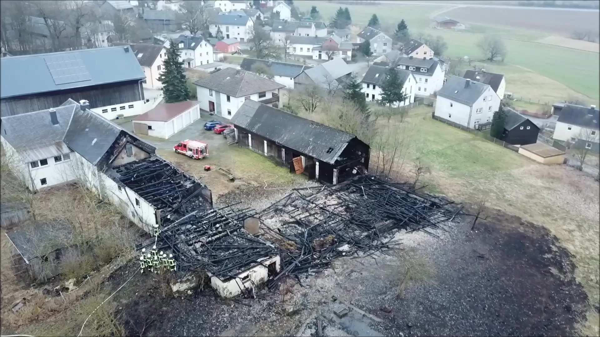 Im Selbitzer Ortsteil Dörnthal (Landkreis Hof) brannte in der Nacht zum Sonntag (10. März) die Scheune von einem Dreiseithof komplett nieder. Ein Nachbar bemerkte den Brand und verständigte die Feuerwehr. Wie ein Sprecher der Feuerwehr Landkreis Hof mitteilt, waren 180 Einsatzkräfte vor Ort.