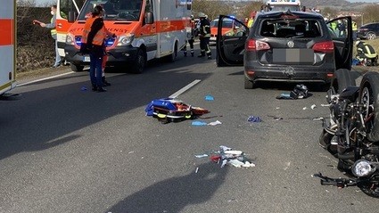 Biker (50) kracht ins Heck eines Pkw und überschlägt sich