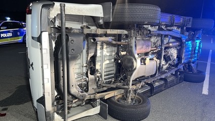 Die drei Mitfahrer auf der Ladefläche konnten sich durch einen Sprung herab retten, verletzten sich dabei aber jeweils nicht unerheblich. Der Fahrer, der bei dieser Aktion nicht angeschnallt war, wurde schwer am Bein verletzt. Neben ihm kam auch die 21-jährige Bekannte mit Verdacht auf Gehirnerschütterung im Anschluss zur ärztlichen Versorgung in ein Krankenhaus.
