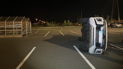 Gegen 23:15 Uhr war ein 29-Jähriger mit einem Mitsubishi Pick-Up auf dem leeren Parkplatz eines Supermarktes herumgefahren. Auf der offenen Heckladefläche des Fahrzeuges befanden sich dabei drei Bekannte des Fahrers, zwei 25-jährige Männer und eine 21-jährige Frau. Als der Fahrzeugführer eine wohl zu enge 180-Grad Kurve um ein Häuschen mit Einkaufswägen absolvierte und dabei mutmaßlich mit nicht angepasster Geschwindigkeit fuhr, kippte der Pick-Up seitlich um.