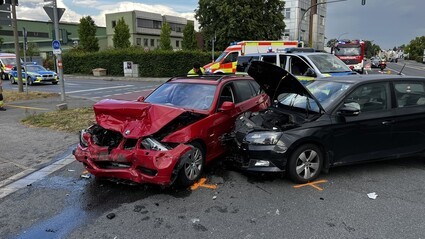 Der 21-Jährige befuhr mit seinem Skoda die Hallstadter Straße stadteinwärts und bog nach links in die Kaspar-Schulz-Straße ab. Zum selben Zeitpunkt kam ihm der 73-Jährige mit seinem BMW entgegen, weshalb es zum Frontalzusammenstoß der beiden Autos kam. Bei dem Zusammenstoß verletzten sich beide Fahrer leicht. Die Beifahrerin des 73-Jährigen erlitt eine Handgelenksfraktur. Der Verkehr war für rund 1,5 Stunden stark beeinträchtigt. Der Gesamtschaden des Unfalls liegt bei mindestens 15.000 Euro.